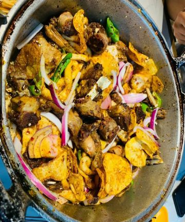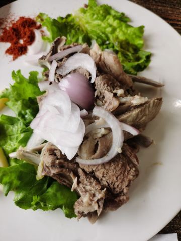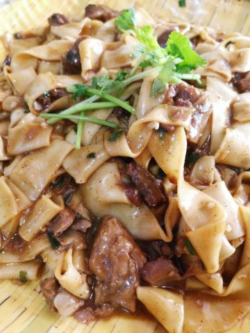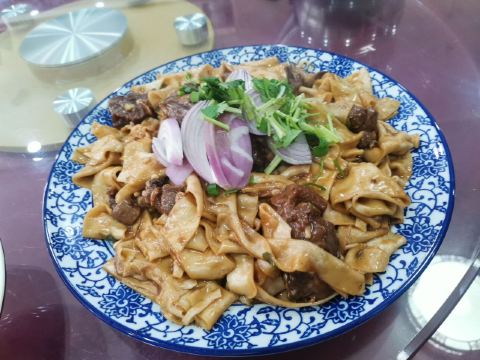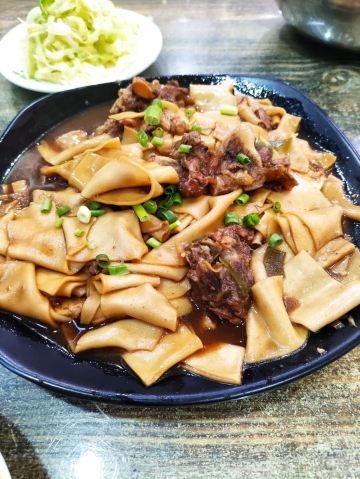 羊肉酥烂,汤汁浸入饼皮,劲道入味,每一份焖饼都是新鲜做的,羊肉分量很大,店主很热情,还会凉拌的紫甘蓝噢。