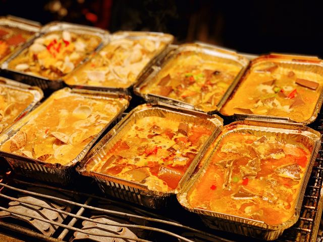 横竖是二温小迪🌸沙洲食驿是敦煌夜市里最好玩的地方,几排高高悬挂的红灯笼把周围的游客们都吸引了过来,这里有各式各样充满特色的西北美食!你可以边走边吃,也可以找个长登细细品尝美味。 🌿环境:这里的摊位被分割成一间间的方形木屋,还有些长桌和凳子被摆放在公共区域,看着是比较干净和规范的。工作人员也都带着围都,类似口罩的塑料防具,看着还是让人比较安心的。 🌈店铺推荐: 1️⃣李广记杏皮茶 价格:15元 这是我西北十日游喝过的最好喝的杏皮茶,酸酸甜甜的,解渴不腻人。 2️⃣沙葱牛肉饼 价格:10元 闻着香,吃着更香,皮脆而不干,嚼起来还带韧性。 3️⃣红柳烤肉 价格:13元 大大肥瘦相间,肉汁饱满,咬起来牙口也不费力,一串下去有点意犹未尽。