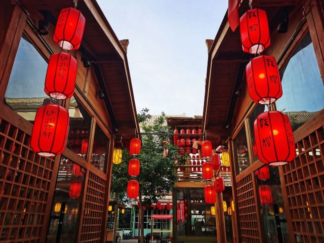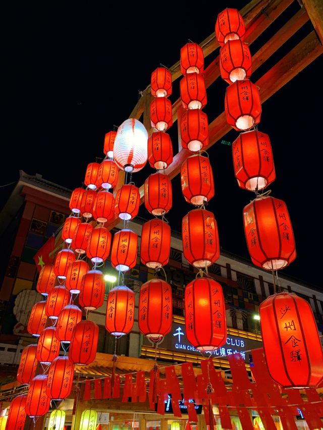 Shazhou Market来到敦煌踏青的话,除了鸣沙山月牙泉,还有大家所熟知的敦煌莫高窟以外,还有哪一个地方是一定要来的呢? 今天给大家推荐的这个地方是敦煌既热闹又小众的一个闹市~沙州市场 说敦煌的沙州市场是大家踏青的壁道处的原因有很多,首先这里经营着敦煌本地特色的干果,来到这边旅游和踏青必须要带一些当地的特产喽。另外如果你的一些装备没有准备齐全的话,这个市场上面也有卖装备的小店小店的价格并不贵,而且非常的亲民。另外在夜晚的时候,这里同时也是一条美食街,你能够感受到各种的美食和品尝到各种的美味。 之所以说这里热闹,那要等到晚上的时候才能看到了,晚上的时间这里是灯火辉煌,热闹非凡。所有喜欢西北美食的人都会聚集到这里,而整条街的装饰也是非常的漂亮,一盏又一盏的红灯笼,慢慢的亮起,有如走进当时丝绸之路的盛况