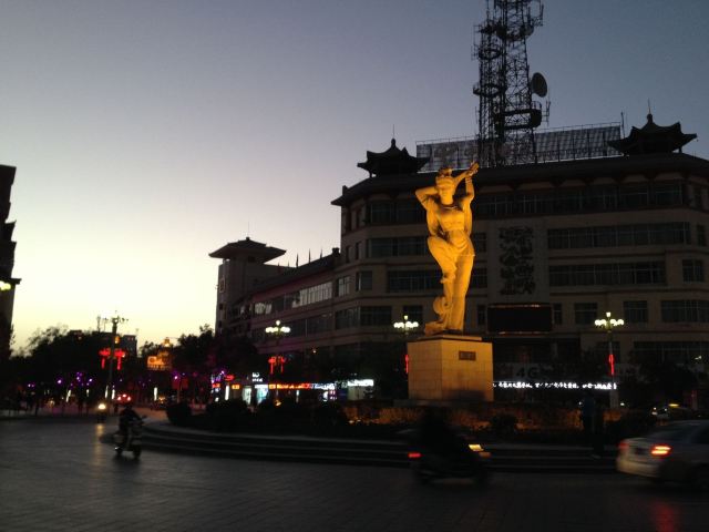 沙州市场是当地最有名的小吃一条街,水果蔬菜、古玩、纪念品、工艺品、纺织品、大牌档,应有尽有。白天为百货市场,有许多卖手工雕刻的工艺品的店,图案大多以飞天为主。人不多,很多店面下午才营业。晚上有室外大排档,一直营业到凌晨。
