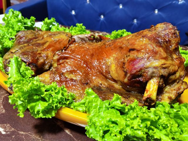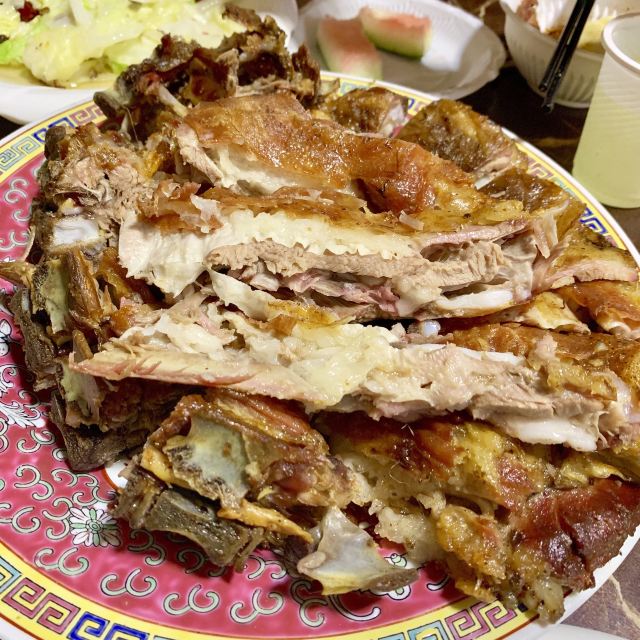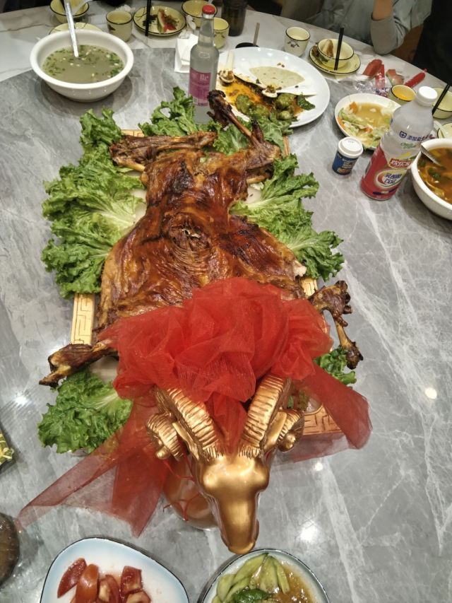 Yangjiazhuangtuyaoguomukaoquanyang一路游玩,在这里吃上了最满意的一餐。提早预定了半只果木烤全羊的套餐,店里提早3小时会先烤上,安排专人来酒店接去餐厅,服务超级到位[强]店里专门安排了整洁的小包间,泡好了清火的菊花茶,还有爽口的大西瓜,静等烤全羊端上[调皮]半只羊居然有满满的两大盘,皮脆肉嫩的,超级香,可是满满两大盘,还有好多配菜点心根本吃不完,每道味道都很正,对于游客来说只有都尝上一口解解馋。这边的主食饼也是特别香,与羊肉一起炖的面片,满满的汤汁精华包裹,吃了根本停不下来[调皮]这是的羊杂汤感觉清淡些正好解腻。各各吃得扶墙出。本着不浪费的原则,实在没办法,和店里商量着寄放多余的,隔天再来吃,没想到店家居然答应了,真是意外。第二天到店,老样子还赠送了大盘西瓜给我们,太解暑了。配了些蔬菜,都炒得不错,特色的沙葱炒蛋好吃😋手撕包菜也是这边吃过最好吃的。店里的服务真是超出想象,以后有机会一定还会来。