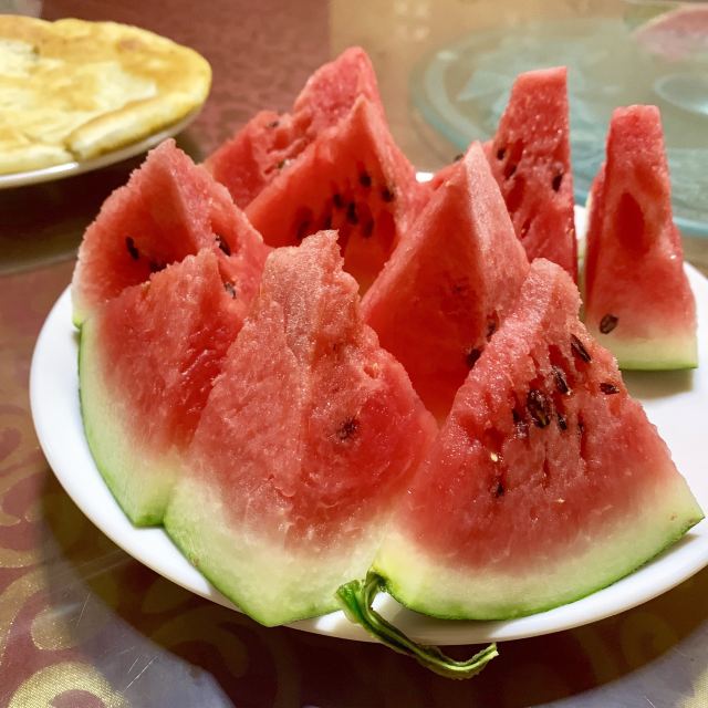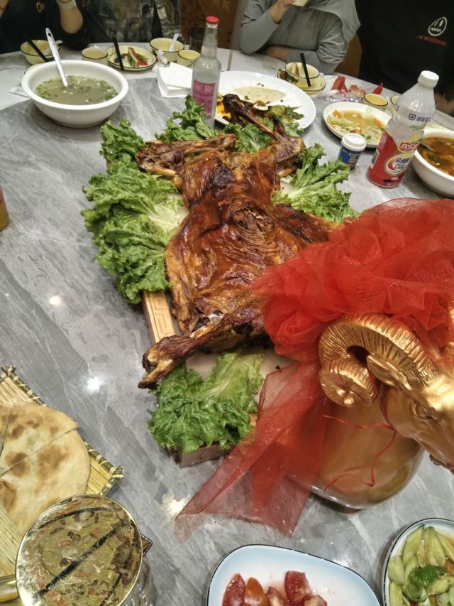 Yolanda_zy一路游玩,在这里吃上了最满意的一餐。提早预定了半只果木烤全羊的套餐,店里提早3小时会先烤上,安排专人来酒店接去餐厅,服务超级到位[强]店里专门安排了整洁的小包间,泡好了清火的菊花茶,还有爽口的大西瓜,静等烤全羊端上[调皮]半只羊居然有满满的两大盘,皮脆肉嫩的,超级香,可是满满两大盘,还有好多配菜点心根本吃不完,每道味道都很正,对于游客来说只有都尝上一口解解馋。这边的主食饼也是特别香,与羊肉一起炖的面片,满满的汤汁精华包裹,吃了根本停不下来[调皮]这是的羊杂汤感觉清淡些正好解腻。各各吃得扶墙出。本着不浪费的原则,实在没办法,和店里商量着寄放多余的,隔天再来吃,没想到店家居然答应了,真是意外。第二天到店,老样子还赠送了大盘西瓜给我们,太解暑了。配了些蔬菜,都炒得不错,特色的沙葱炒蛋好吃😋手撕包菜也是这边吃过最好吃的。店里的服务真是超出想象,以后有机会一定还会来。