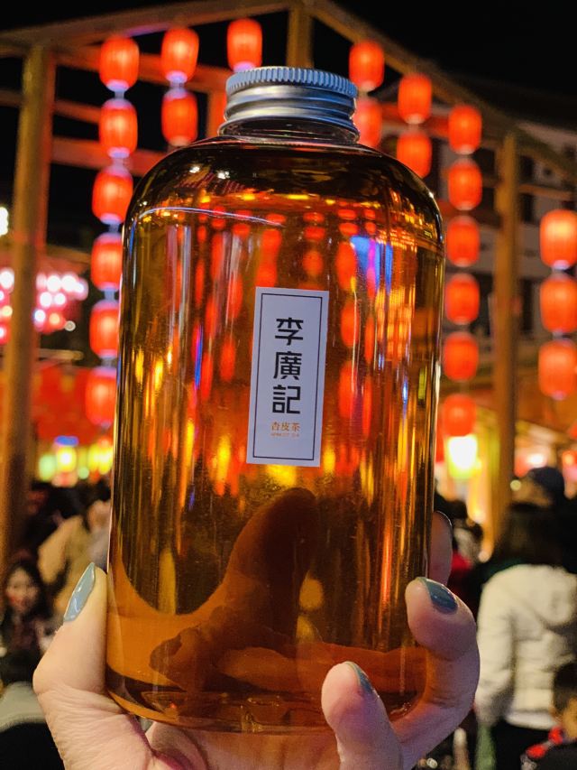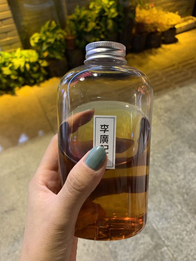 🍭🍭李广记杏皮茶是我无意中在敦煌的沙洲夜市看到的,看到有好多人排队就去凑了下热闹。买单的队伍还是挺快的,差不多5分钟就可以排到了,取茶大概等了20分钟。 🍭🍭他家的杏皮茶主要有原味,白桃乌龙,桃花满溢三种,感觉白桃乌龙和杏皮茶也蛮搭的,不过第一次还是尝试下原味。 🍭🍭杏皮茶的味道和乌梅汁有点像,不过口感上更清新,没有乌梅汁那么甜,而且真的可以吃出杏脯的味道。 🍭🍭他家包装也是非常棒的!酒瓶设计又方便携带又好看,瓶底还能看到几枚杏脯。 🍭🍭价格是15一瓶,比市场机2.3块是贵了很多,但是好喝啊,还是一分价格一分货!