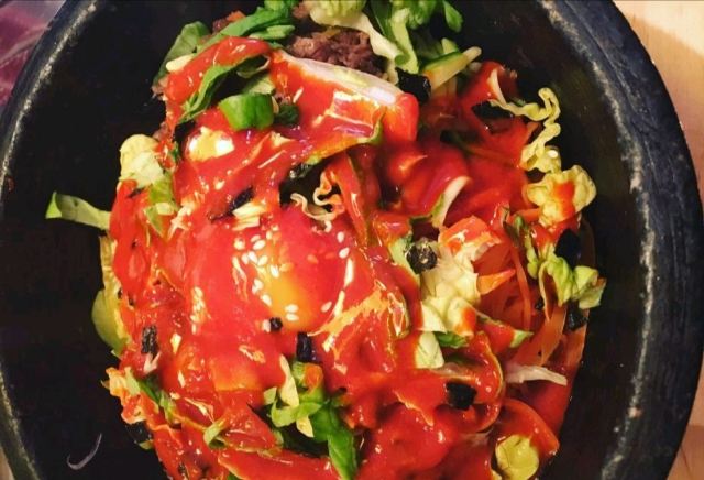 还不错的韩国料理,要了两碗韩国拌饭,做的还可以,拌饭酱是韩国进口的,不过韩国的饺子我和很一般,炸过之后都冷掉了,里面是韭菜。