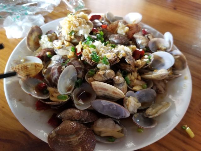二十多年前来嵊泗的时候对海鲜有些过敏,这次来也特别小心,尽量都吃烧熟的。儿子喜欢海鲜,觉得这家店不错,虽然没吃海鲜面,但点的二个菜味道挺好的。