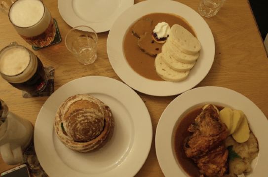 餐厅本身就是一座历史建筑,拥有超过700年的历史,在这历史悠久的建筑里进餐,情调和气氛好得不得了!这里的捷克菜道地又美味,烤鸭烤得很香,猪脚肉质也鲜嫩极了!难怪这两款食物常常供不应求。更赞的是,这间餐厅的菜分量很大,吃起来非常满足。