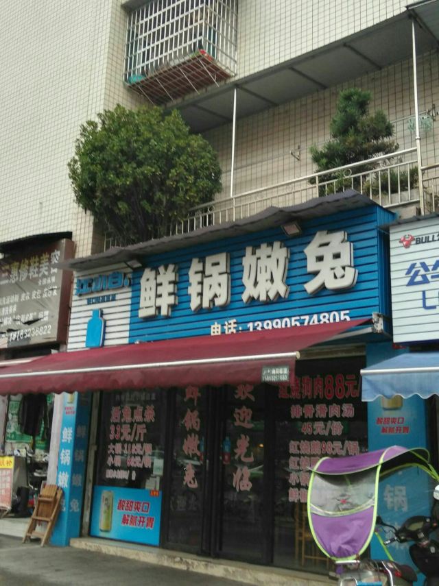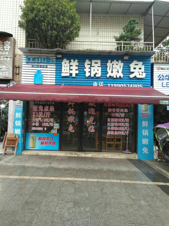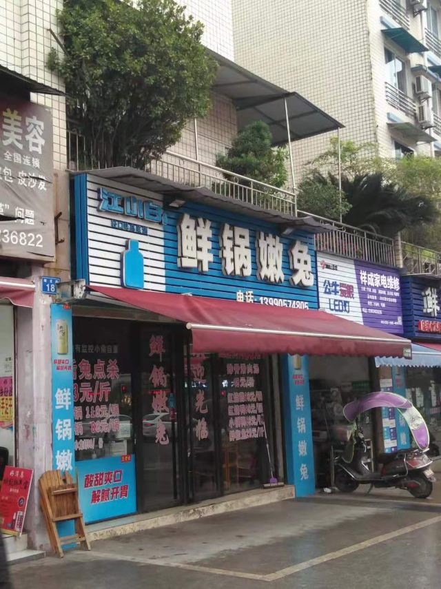 鲜锅嫩兔本是一道起源于自贡的盐帮菜,兴盛路和蟠龙路的交叉口有一家餐馆,馆名就叫鲜锅嫩兔,兔宰后剁成丁,下油锅半熟后,加入海椒豆瓣仔姜等配料炒上五分钟,色香味俱全了。