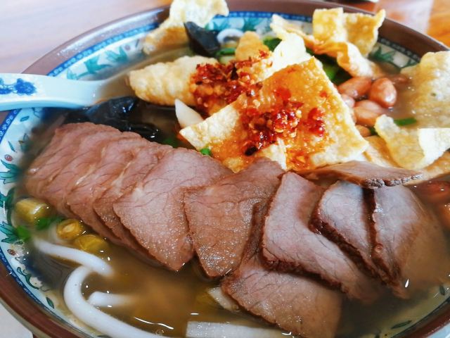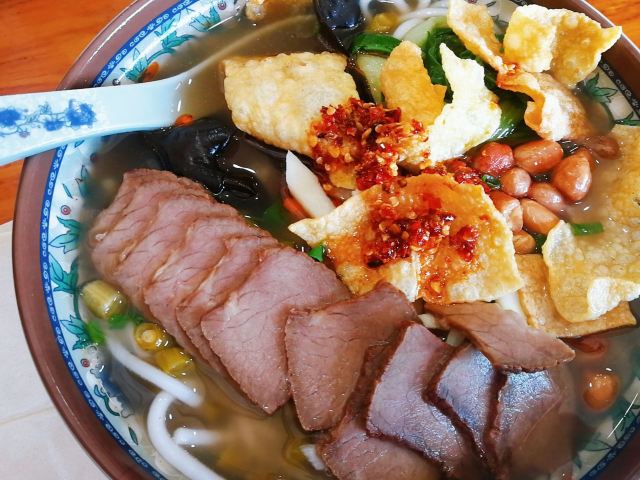 宁波市区吃到16块钱的螺蛳粉有烧鸭粉也够量 好久没有在外面吃过这么足量的螺蛳粉了,这烧鸭放的就跟不要钱的一样,关键价格还便宜16一份。这家苍蝇小馆店家的良心经营让我折服,不得不验证一句话小店也有好味道。 碗口满满的6片烧鸭还有豆皮、花生、酸豆角、木耳作为佐料。汤汁鲜美,粉也很是筋道,Q弹细腻,滑溜溜的粉嗦起来可要眼疾手快,不然汤汁就溅起来了。 🕹地址:曙光北路116号 🍣店名:曹记叉烧饭 🎎人均:16