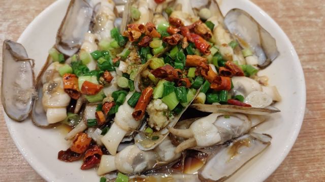 海鲜面人多多多多,不能接受在路边排队直接别来了,下午快两点来还是要排队的,主要因为座位实在太有限了。而且这里排队也没有发号叫号,全凭服务员妹子的超级大脑,空出座位她会吼一声:那两个帅哥坐在这里,下一桌是一家三口坐那里! 不过因为翻台率还比较快,所以在饿坏了之前还是能排到的。毕竟大家都是吃完就走,逼仄的环境也没法久坐。 葱油蛏子绝对是店里的头牌!!!不吃后悔!!!我们吃完一份觉得实在恋恋不舍于是又点了一份,分量不多,大概十个蛏子,胜在新鲜味美,葱油加蒜末的炝爆实在不能更香! 黄鱼海鲜面分量惊人,建议两个女生合吃一碗,这样还能吃点别的。在服务员建议下加了一只蟹,68一只,也忒小了,不太划算。 海鲜炒年糕也很好吃,宁波年糕果然名不虚传。