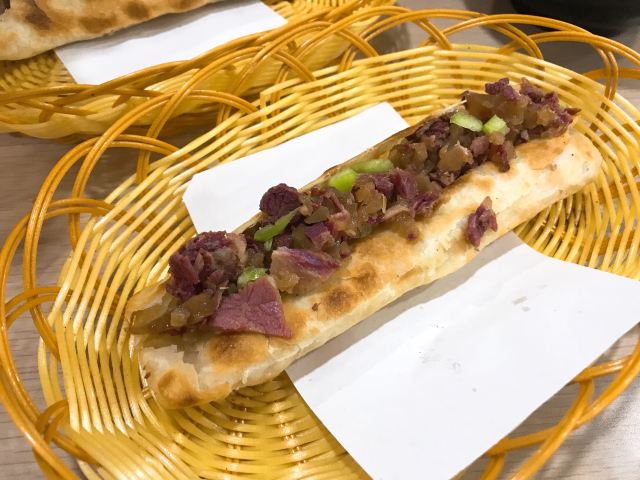 拖延小姐鼓楼这家驴肉火烧似乎开了很多年,驴肉火烧这种特色小吃宁波好像还真不知道有第二家的,华北地区非常流行,南方这边好像对此并无兴趣 驴肉火烧有2种,圆形的保定驴肉火烧,长方形的河间驴肉火烧 原本以为驴肉火烧也就是卤好的驴肉伴着老汤汁加入酥脆的火烧里面,其实还能玩出很多花样的,加驴肠的板肠火烧、加驴皮冻的焖子火烧,还有不夹肉的白皮火烧,驴心、驴肚、驴杂、蹄筋等等,都能做各种料理 一个多加肉的火烧和一个焖子火烧,其实第一次吃,也没吃出个所以然来,就觉得火烧很酥脆,里面的驴肉味道比较淡,肉汁很少,所以配了碗驴清汤,汤是很鲜,热腾腾的,冬天喝正好 驴肉低脂高蛋白,而且还有补血、补气、补虚的功效,是优质肉类,不过江浙地区除了阿胶,对驴肉兴趣寥寥