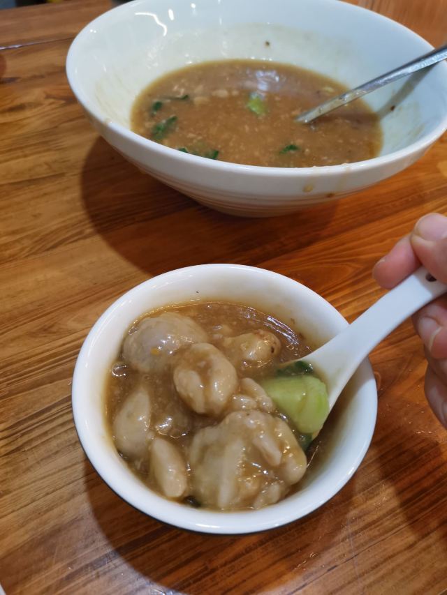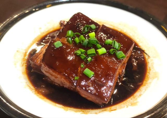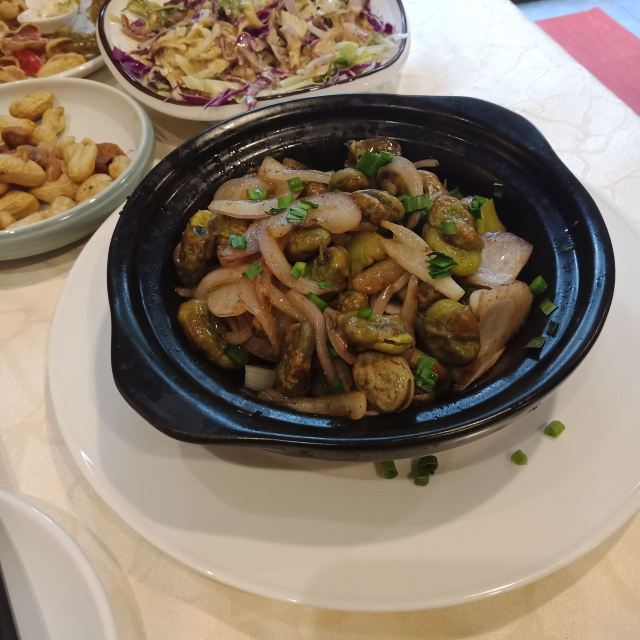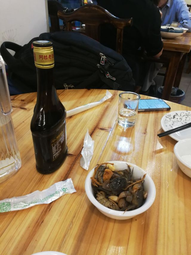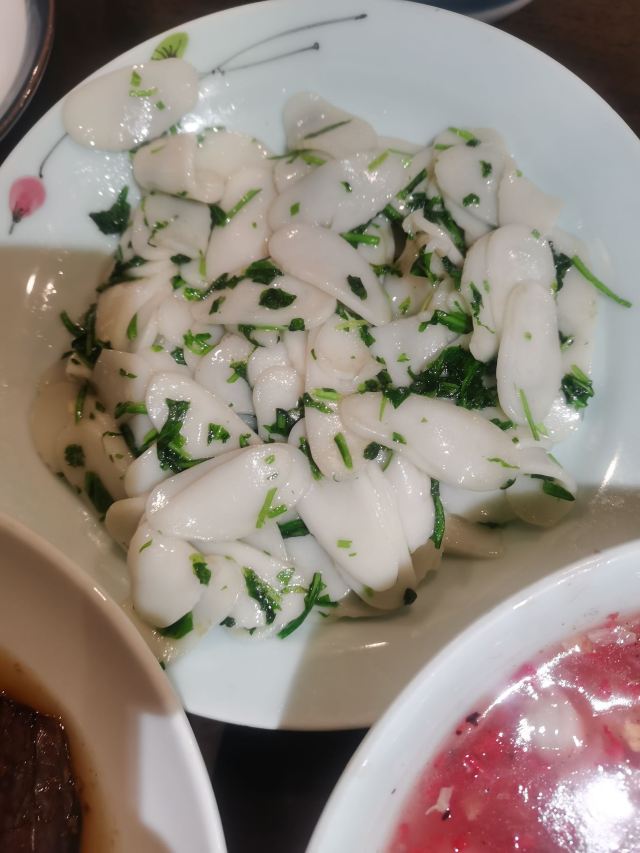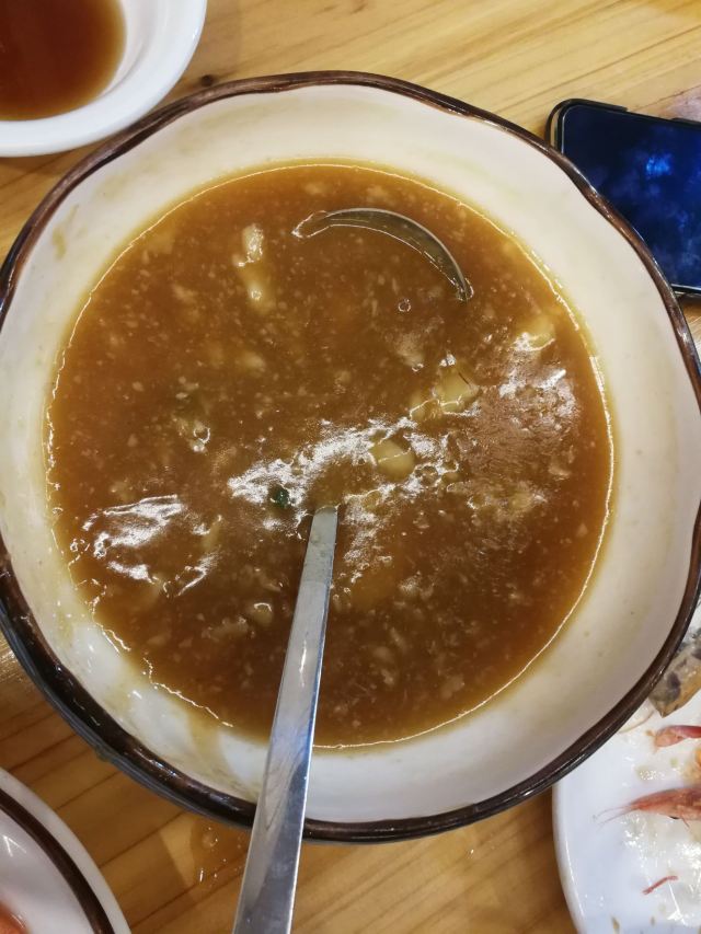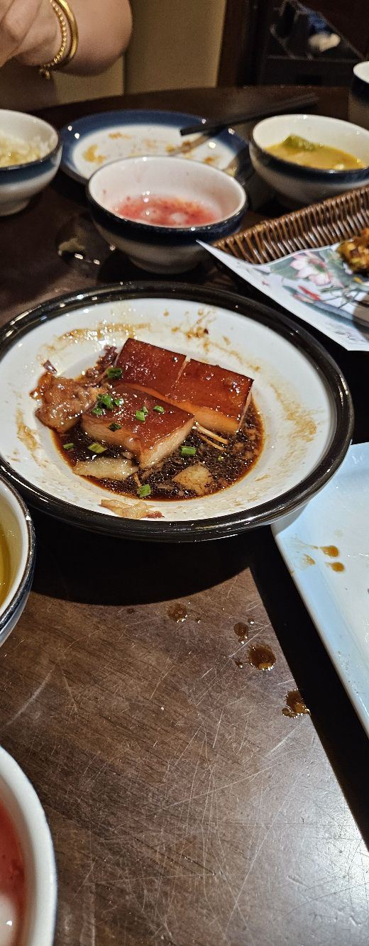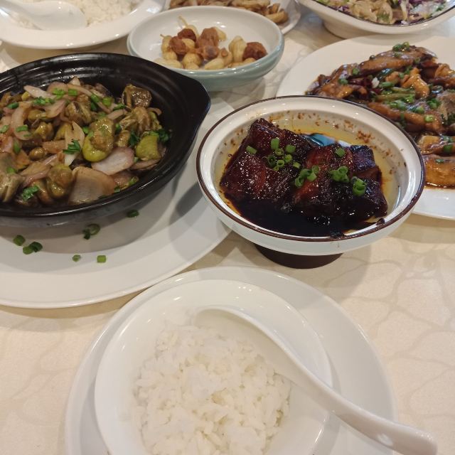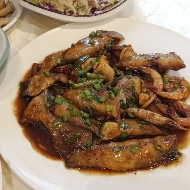 阿拉名灶店子不大,桌椅摆得有些拥挤,装修也有些显旧了,但却有一种烟火气息,看得出来应该是周边居民常来的一家店。 点了几个店家销量榜前几位的菜品。东坡肉,酱香软糯,肥而不腻,入口即化;酱青蟹,生腌制成,酱浓味鲜,蟹甜膏肥,十分可口;腐皮包黄鱼,原以为是个湿菜,上来才知道是腐皮包裹拆骨黄鱼肉油炸而成,倒也酥脆鲜香,应该是个不错的下酒菜。 这几个菜十分符合文字作品对江浙菜的描述,也可以说满足了对江浙菜的味道想象,宁波菜应该就是这个味道了。