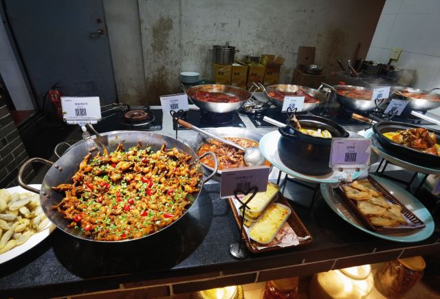 红膏呛蟹,椒盐虾潺,勾魂东坡肉,葱油海瓜子,腐皮包黄鱼,酸菜炖牛腱,剁椒鱼头,红烧小黄鱼,油渣芋艿羹,泥螺,酒酿圆子,白切鸡,宁式老三鲜,酒酿核桃羹