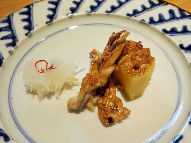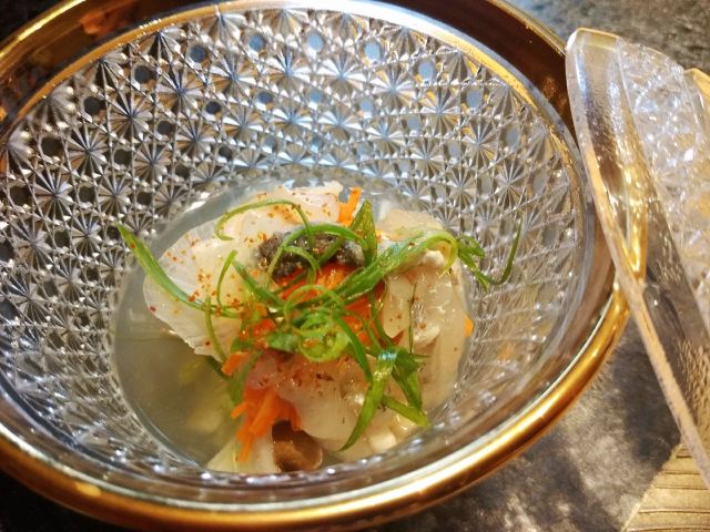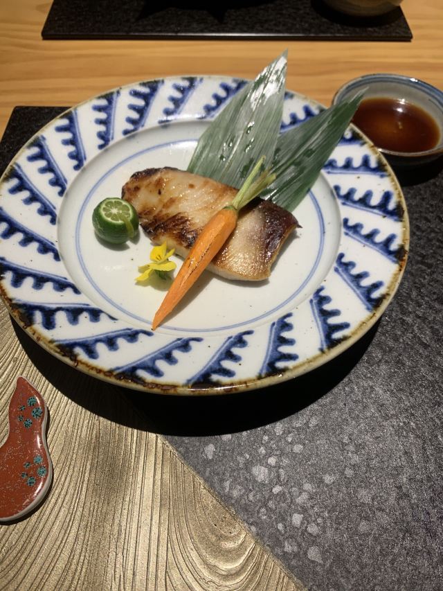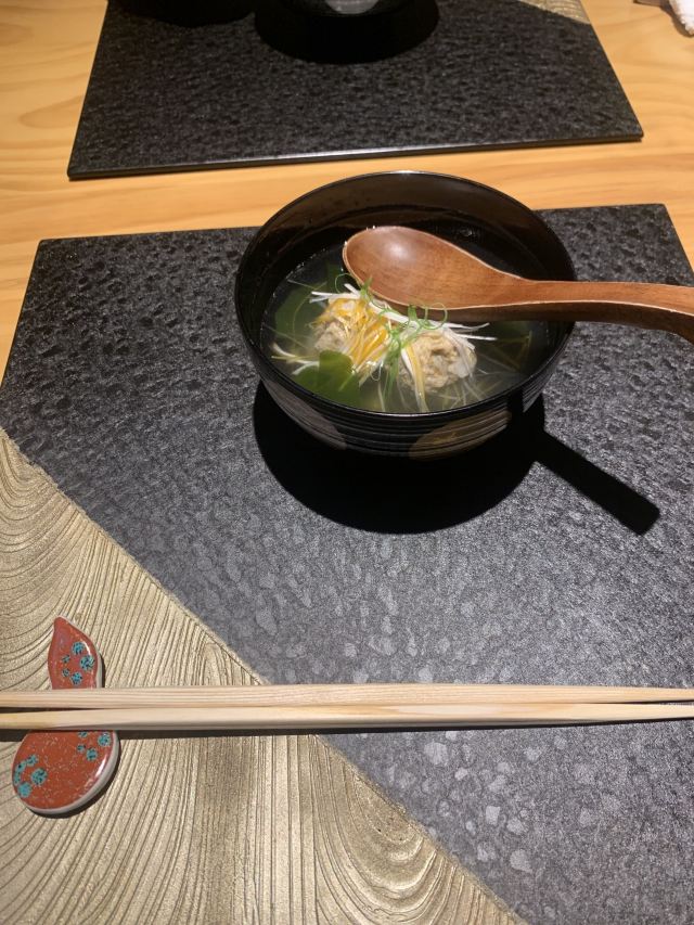 宁波几时休品净心料理,神思于大江户。 古江户,今东京,无可替代的日本发展史的缩影。大江户,日料店,毫不夸张的宁波日料界的翘楚。 《淮南子》曰:龙吟而景云至,虎啸而谷风轃。”这家位于阿拉宁波首个轻奢潮流艺术购物中心的龙吟大江户,跟其边上的兄弟门店名炙烧肉和綱元水产一起,以大幅的日式广告牌、大型蟹模型、空气只隐约弥漫着的浓郁日料气息,营造出了“宁波的道顿堀”。 当门悬挂白色酒旗帘,黑字店招字体飘逸,挑帘门开,有日文招呼,换鞋入内。上下二层的构造,一楼吧台位和茶艺位,二楼四方,中间中庭,四周围绕用京都、大阪等日本地名命名的包厢,并根据日式家居追求内敛、质朴和就餐私密性的需求,设计为了大小不等,适合2-10人就餐的内嵌式榻榻米包厢。整个感觉餐厅在软硬装方面,大量运用于自然界的材质,内饰布置典雅中彰显豪华,完美的烘托出了清雅撙节、深邃禅意的意境,且空间层次感和立体感明而不显。 众所周知,かいせき源于京都,亦称京怀石,以追求天然本味而受到世人所推崇。当天我品尝的是陆佰伍一位的怀石料理“松”套餐,由出身千叶县料理世家的伊藤茂亲手,哈,我知道日本饮食文化研究第一人,人送雅号“大食轩酩酊”石毛直道也是千叶县的哟! 前菜由海参、海胆、鮟鱇鱼肝、鸭胸脯肉、柿子、香菇、京葱、魔芋丝、杏仁片等荤素食材组成,圆盘装盛,调味皆轻盈,我最喜柿子腌制甜腻,海参泡发通透。蒸碗是鲷鱼汤,做为“いちじゅうさんさい”中“一汁”的存在,有萝卜泥、白发葱和柚子丝调味,中和了鲷鱼浓烈的海腥味,喝之,暖胃体神。赤贝、金枪鱼、牡丹虾、鲷鱼、鳗鱼构成了向付,蒲叶铺垫,冰渣保温,整体造型和谐,新鲜的口感,最能代表怀石料理所追求的食物天然本味的宗旨。煮物,最近,阿拉宁波美食圈流行起了河豚风,餐厅不能免俗的推出了河豚野菜蒸,金边刻花菠萝格玻璃盏装盛,别致至极,河豚之唯美,难怪北大路鲁山人感叹:“人生不如意事十之八九,吃了河豚,才知道做人还是值得的。”肉料理,把和牛薄烧做为强肴,很有日料代表性,黑色日式文字炉上,和牛串烤,火候合理,锁汁充分,搭配的芦笋既调色又解腻。 满足身体的美食是不足够的,也得要有满足心灵的美食。——Dorothy Day(20世纪最有影响力的的美国人权主义者,天主教工人运动的创始人之一。)我想我找到了……