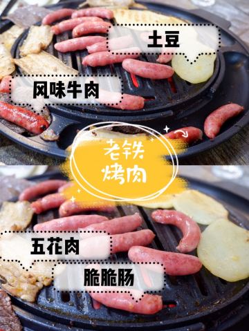 五花肉,脆肠,鸡翅中,韩式烤肠,地瓜片,大块肉,厚切精品五花肉,风味牛肉,老铁脆脆肠,韩式小烤肠,生菜,特色鸡蛋羹,老铁烤肉,特色芝士玉米,土豆片,碳烤鸡翅中