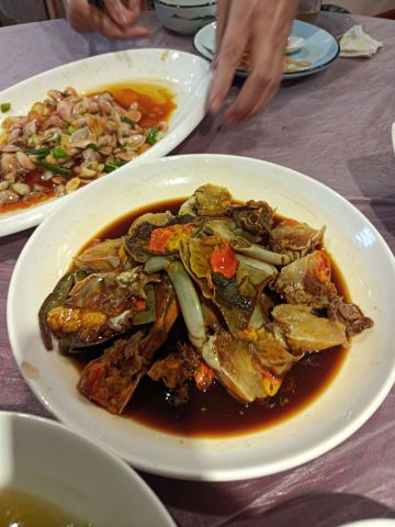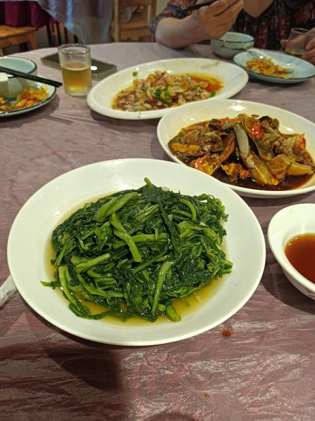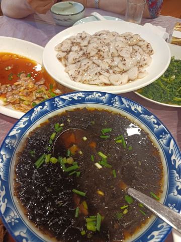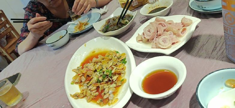 菜蕻炒年糕,油渣豆腐,青菜鸡胗羹,桂花糖年糕,油爆河虾,酱爆牛蛙,白切大肠,大肠煲,油渣芋艿,五香牛肉,熏鱼,白切鸡,糟鹅爪