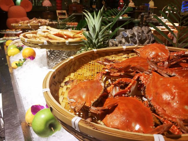 三文鱼,咖喱蟹,东钱湖大闸蟹,小馄饨,甜虾,煎牛排,海鲜,抹茶提拉米苏,甜点,自制西点,自榨果汁,招牌重芝士蛋糕,各色水果,小海鲜,象拔蚌,出炉面包布丁,煎黄鱼,小甜点,榴莲,纽芝兰冰激凌,特色鲜肉混沌,印度飞饼,西瓜汁,冰激凌,生鱼片