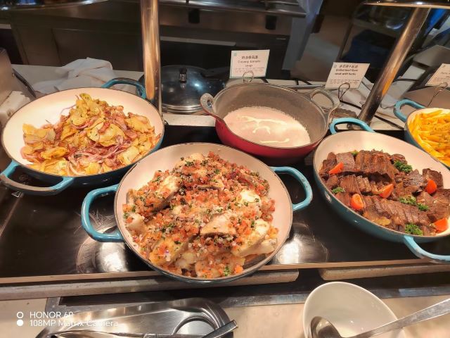 位于香格里拉酒店2层,开放式厨房全天供应精选环球美食自助用餐,环境优雅且服务贴心。刺身很新鲜而且无限量,对个别热门菜品要早早下手才能享受到哦。