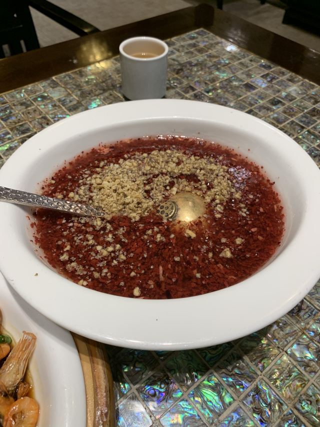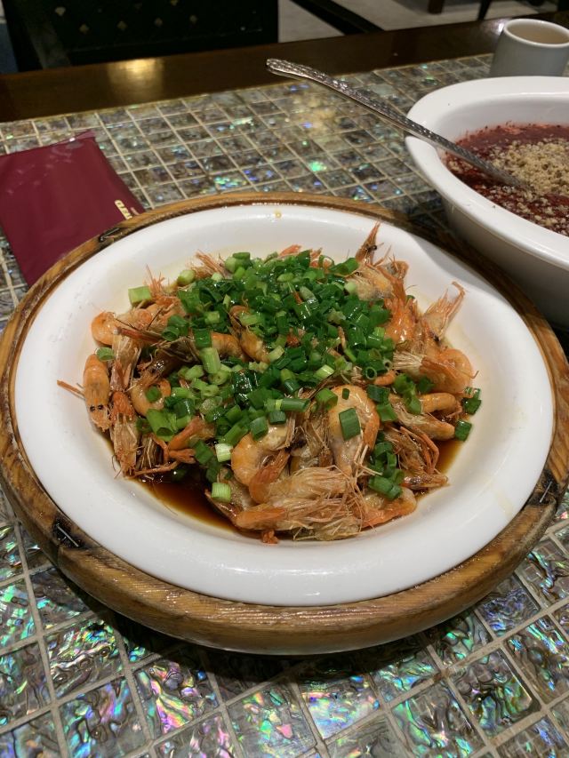迪斯卡沃从朱家尖返回上海,朋友说去慈城古镇的"走马楼"吃午饭,弯弯绕绕开进去,曲径通幽处是一座古色古香的饭庄,坐落在碧绿湖畔,隐匿在绿树掩映中,中午用餐的客人不算多,环境雅致温馨,红酒糟核桃羹是招牌菜,颜值高,米道赞,铜盆酱油虾也鲜美无比,灵额。