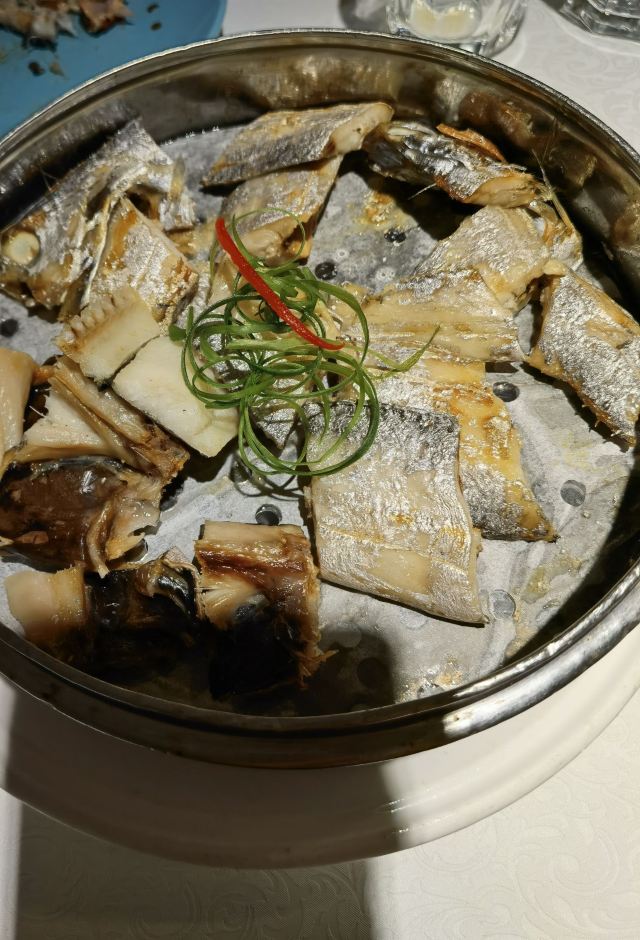 这是一家和外婆家齐名的专做宁波小菜的馆子,翻台率很高,连锁店众多。海鱼合蒸,每天都不一样,根据当日捕获鱼类拼成的蒸菜,做法就是葱油蒸,基本突出海鲜原味;栗子牛蛙¥39,栗子和牛蛙本身我都很爱,这道量很足,酱汁咸中带甜,栗子糯心,牛蛙很嫩,吃起来很嗲;鱼鲞拼盘¥49,晾干的带鱼鲞和鳗鲞洗净切段,加料酒葱姜上笼蒸熟,去皮剔骨,偏咸偏腥气吃不惯;豆瓣酱蒸大闸蟹️¥26/只,宁波做法,比清蒸大闸蟹吃起来更入味,酱料据说是秘制的,口味还可以,蟹还不算饱满;上汤西兰花¥25。