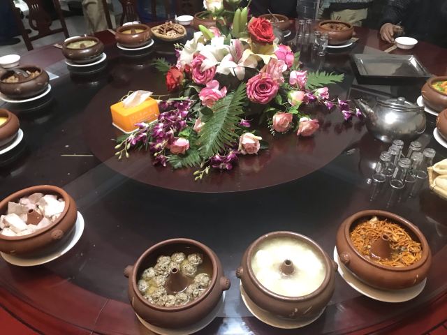 锅烧河鳗,梭子蟹,葱油花蛤,葱油海草,鹅肉,洋葱大肠,干锅包心菜,葱油膏蟹,牛五花肉,西红柿榨菜汤,臭双拼