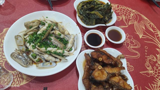 红烧糖鱼头,味浓鲜美,鲜甜滑嫩,咸蛋黄鸡翅,鸡翅很嫩,颜色好看,长街蛏子,颗颗饱满,滑嫩可口,五香牛肉,有点咸,纯瘦肉,好吃