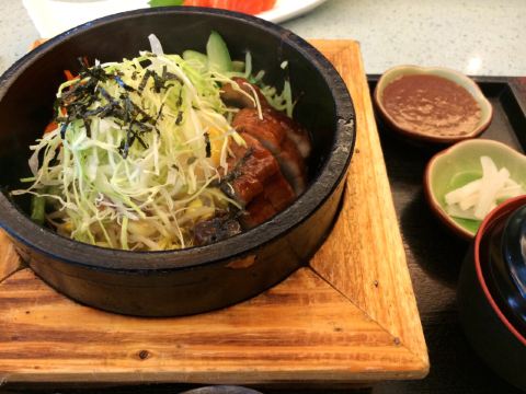 南部商务区里面的一家日本料理,这个地方对我来说很远,也忘记了是什么时候来的了 日料店上下两层,能容纳蛮多人的,中午时分生意火爆,这边写字楼工作的有些会来吃个饭,因为这家日料店价格还比较实惠的,有些简餐套餐性价比挺高,当工作餐不错 三文鱼刺身,价格应该是30+吧,料足,厚厚的7片三文鱼,三文鱼新鲜而且品质也很好,现在有没有涨价就不知道了,因为是蛮久以前去的,以当时的价格来说,确实性价比高 鳗鱼石锅,以前卖38,鳗鱼不多,烤的还不错,当然价格也不高,配菜丰富也新鲜,石锅拌饭味道不错,吃的很饱 没有太贵,量足味道又好,难怪生意好
