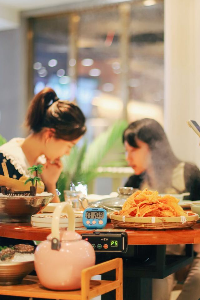 西贡_人生中第一次吃椰子鸡火锅,特打卡体验: 🍲店名:凤喜记.椰子鸡火锅 📍详细地址:城隍庙药行街168号亚细亚A座5楼 🅿️停车:免费停车位不好找,在附近绕了一圈有个收费的地下停车库,5元1小时 🕙营业时间:10:30-14:00 16:00-21:00 💰人均:100元 🖼环境:半开放式的餐厅设计,就在海底捞旁边,绿色的椅子看起来很清新,喜欢粉色的茶壶。门口有小哥在切新鲜椰子🥥。 🌿服务态度: 这个真的超棒了,刚开始会帮着调好调料,然后把新鲜的切好的2个椰子往锅里倒椰汁,放入生鸡肉,定时器4-5分钟,就可以开吃了。 第一口的鸡汤最鲜,服务员小哥哥已经在我碗里舀好了鸡汤,手还那么好看。路过的时候看见被子里的水少了都会主动给倒上。 ✔️原味椰子鸡半只: 细细品尝,在鲜美的鸡汤中能喝出椰子汁的甜味,半份鸡肉完全足够了,蘸着调料,新鲜的青橘口感清爽,吃惯了重油重辣的火锅,偶尔来个清爽的火锅也不错,还有椰肉和马蹄。 ✔️大颗粒青虾滑: 这个容易老,下锅后得马上捞起来吃,我们煮的时间有点多了; ✔️潮汕牛肉丸: 可能是鸡肉吃太多,鸡汤喝太饱,牛肉丸只品尝了几个,味道一般; ✔️海南粉芋头: 芋头糯糯的,很好吃,也是很多人推荐点的; ✔️自制豆腐皮: 最喜欢吃这个,很新鲜,满满一盘; ✔️椰子布丁: 冰冰凉凉的椰子布丁甜品,一下子就吃完了,很爽口,手捧椰子很好拍照; 因为吃太撑了,广式竹升面就没有品尝了,够吃三人份的了; 整体感觉还是可以的,价格也比较亲民。吃完之后也没有什么火锅异味。