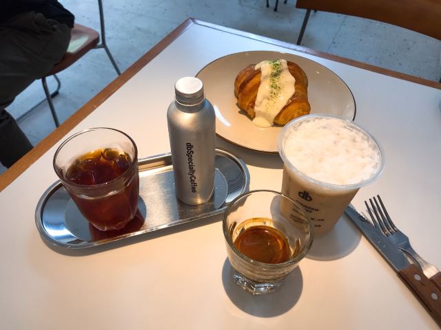 db搬到文青聚居地集盒后,更是一座难求,周末甚至要留号排队等位,上下两层的空间依然塞不下络绎不绝的打卡小仙女 先点了单,好不容易抢了个座位 海盐芝士可颂,依旧很棒,可颂工坊搬去与db合作后,想要便捷的吃到这家的可颂就没那么容易了,堂食的好处是能加热,可颂还是热的更酥香一些 意式浓缩、拿铁都点了些,虽说db的咖啡算不上多好喝,冰滴相对来说还比较喜欢 新冰酿是当时新出的一款,上面很多类似泡沫与奶油混合物的东西,不知该如何描述这个味道 甜品也想尝,毕竟馋,巧克力香蕉挞,卖相有点糟糕,奶油也有点齁腻,db的甜品奶油不是纯动物的,反正大多也能吃出来,香蕉算是拯救了这块蛋糕吧,另外一个柠檬芝士还是什么的,也还行 这店随意一坐,咖啡和甜品也说不上有多好,至少看着也能让人愉悦,排队什么的就真的没必要了
