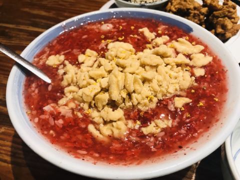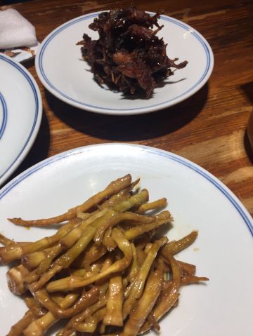 拖延小姐外食江浙菜吃的不多,这家的称赞也是听了蛮多年,好奇是怎样的宁波菜让人交口称赞 并不是豪华的装修,随处能见到好多老物件,多少勾起点黑白记忆 蟹糊、带鱼、烤鸭、臭冬瓜、芹菜螺肉、凤爪、牛百叶、杨梅拼西柚,冷菜已经摆满一桌,蟹糊很棒,红膏诱人,炸带鱼更是肉厚皮酥,烤鸭也值得重点推荐,有点介于麻油鸭与酱鸭之间,甜口不腻,肉质不松散也不老,真是太好吃了 烤鲳鱼、泉水牛肉、蟹骨酱,可谓是热菜必点 这一斤重的鲳鱼可是老价钱了,表面酥酥的,锁住鲜味,鱼肉可不是一般的肥厚,赶紧趁休渔期前多吃几口 泉水牛肉也是有点惊艳,纹理可谓媲美雪花,非常嫩,清汤鲜美又有泡椒的辣爽 蟹骨酱每家的做法不一,选用野生红膏蟹,偏向干煸的口感 鱼头煲、鸡煲,一份就占了三分之一张桌子,量大实在,鱼头煲里的菜籽油老豆腐味道很棒,鱼头没有腥味,鱼身部分留的肉也多 椒盐虾姑,个个带膏,盐水江白虾,也是带籽虾 油渣芋艿也很好吃 梅子肉、糖醋排骨、洋葱土豆、茭白榨菜丝、宁波老三鲜、烤菜年糕……热菜太丰富,完全吃不过来 酒糟核桃羹,蛮有代表性的中式甜羹,用的生核桃,以及迷你汤圆,酒糟一向很喜欢 灰汁团偶尔吃个,也蛮好吃的,小米糕松软清甜,还有手作汤圆 吃进嘴里,下到肚里,终于明白这家火爆的原因了,若是聚餐也必定在首选之列