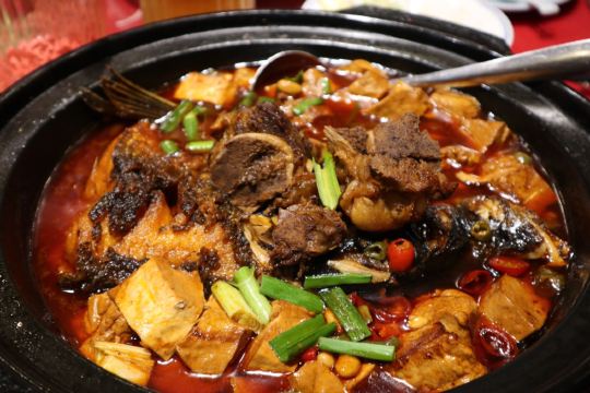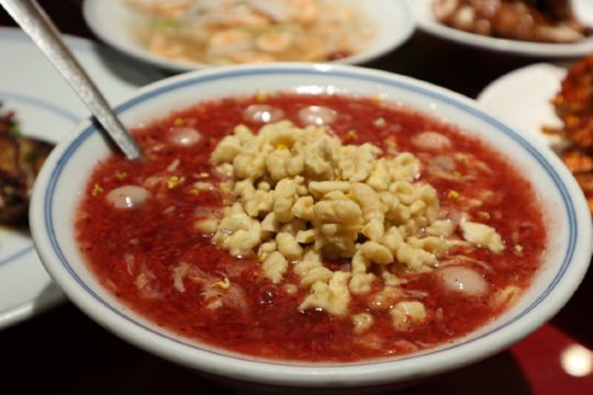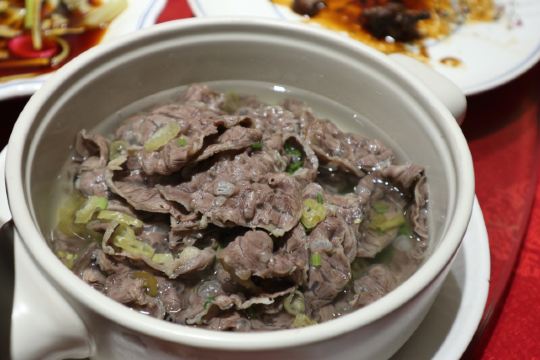 JI MAO DUI TANG外食江浙菜吃的不多,这家的称赞也是听了蛮多年,好奇是怎样的宁波菜让人交口称赞 并不是豪华的装修,随处能见到好多老物件,多少勾起点黑白记忆 蟹糊、带鱼、烤鸭、臭冬瓜、芹菜螺肉、凤爪、牛百叶、杨梅拼西柚,冷菜已经摆满一桌,蟹糊很棒,红膏诱人,炸带鱼更是肉厚皮酥,烤鸭也值得重点推荐,有点介于麻油鸭与酱鸭之间,甜口不腻,肉质不松散也不老,真是太好吃了 烤鲳鱼、泉水牛肉、蟹骨酱,可谓是热菜必点 这一斤重的鲳鱼可是老价钱了,表面酥酥的,锁住鲜味,鱼肉可不是一般的肥厚,赶紧趁休渔期前多吃几口 泉水牛肉也是有点惊艳,纹理可谓媲美雪花,非常嫩,清汤鲜美又有泡椒的辣爽 蟹骨酱每家的做法不一,选用野生红膏蟹,偏向干煸的口感 鱼头煲、鸡煲,一份就占了三分之一张桌子,量大实在,鱼头煲里的菜籽油老豆腐味道很棒,鱼头没有腥味,鱼身部分留的肉也多 椒盐虾姑,个个带膏,盐水江白虾,也是带籽虾 油渣芋艿也很好吃 梅子肉、糖醋排骨、洋葱土豆、茭白榨菜丝、宁波老三鲜、烤菜年糕……热菜太丰富,完全吃不过来 酒糟核桃羹,蛮有代表性的中式甜羹,用的生核桃,以及迷你汤圆,酒糟一向很喜欢 灰汁团偶尔吃个,也蛮好吃的,小米糕松软清甜,还有手作汤圆 吃进嘴里,下到肚里,终于明白这家火爆的原因了,若是聚餐也必定在首选之列