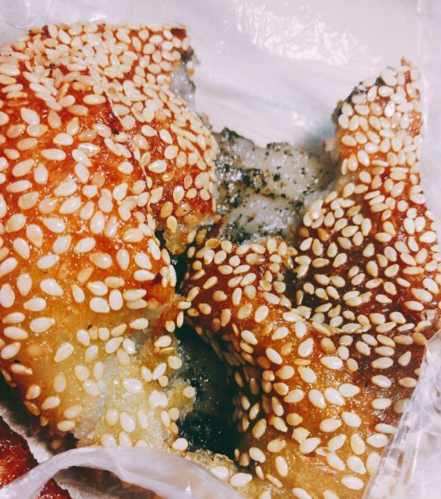 宁波美食|新天福糕团店 老宁波人都爱吃的糕点 是一家百年老字号了 是赵大有的第四代传人 糖糕和麻团是我小时候记忆里的美食了 热气腾腾的早餐店里 油条旁边总会有这两样 麻团虽小 却是賊有料的食物 上面满满的都是白芝麻 里面都是黑芝麻和白糖 甜而不腻 满口留香 因为是糯米做的 还很顶饱 糖糕有点冷了 不过还是很有韧劲 一打开就有红糖的香气 外面有点太油了 真的要改善一下