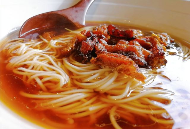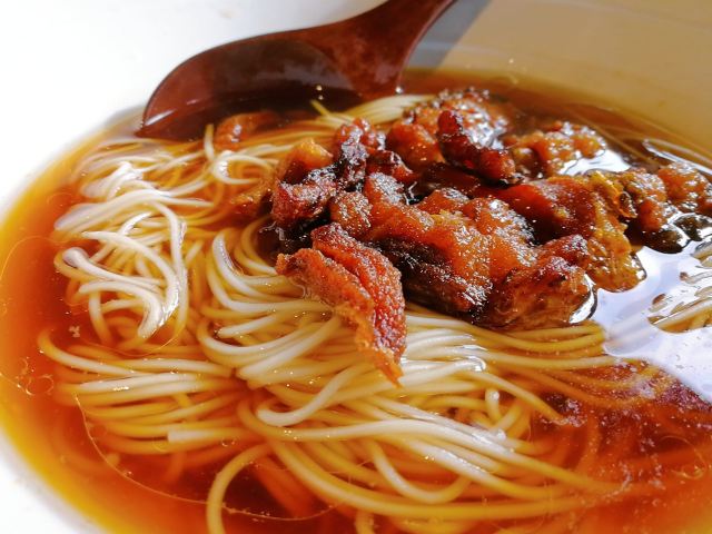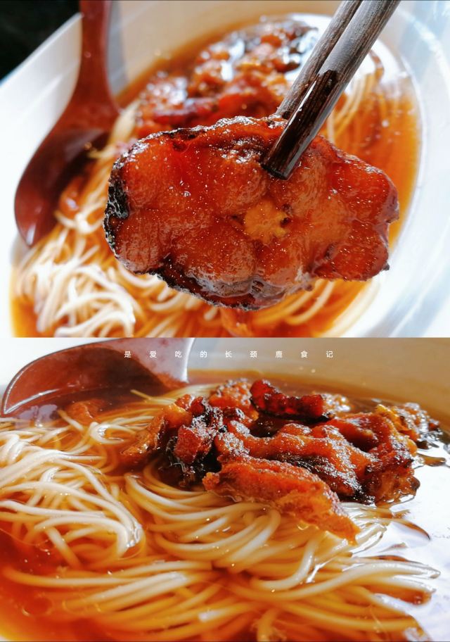 苏式面条的秘密都藏在汤头里了 苏式的面条🍜面是单件的算一份,浇头可以自行搭配,香菇、爆鱼、牛肉又或是五花嫩肉,全凭你的口味而定。 苏式的面条汤清不油,一般都是秘制的高汤,味很鲜。 我个人比较喜欢加爆鱼的浇头,油炸过的腌制熏鱼米道交关好。 一上来我先要喝一口清汤,感受一下汤的味道,然后吃一口爆鱼,在再食面条,这么一套下来身心舒畅,苏州人的精致也收进这小碗里。