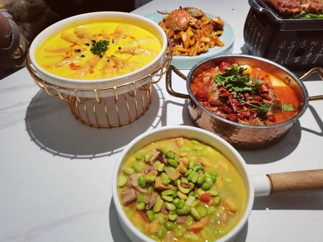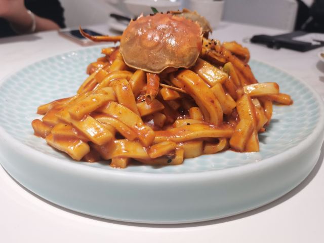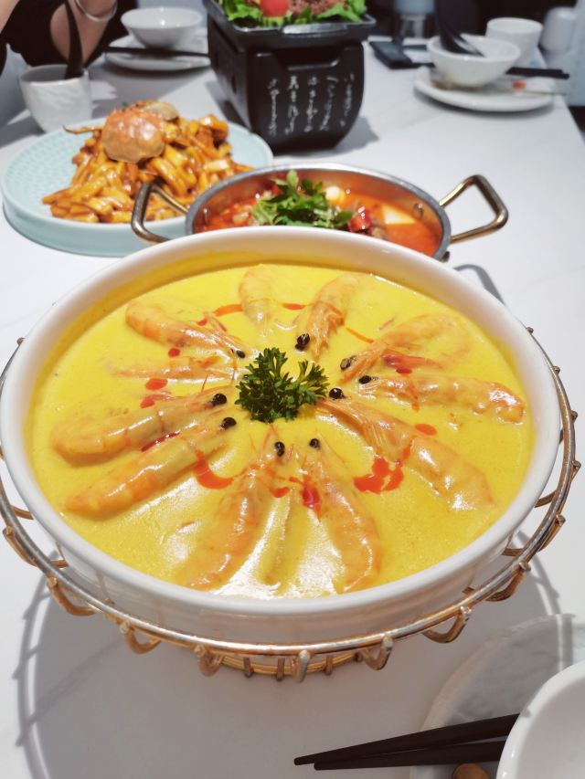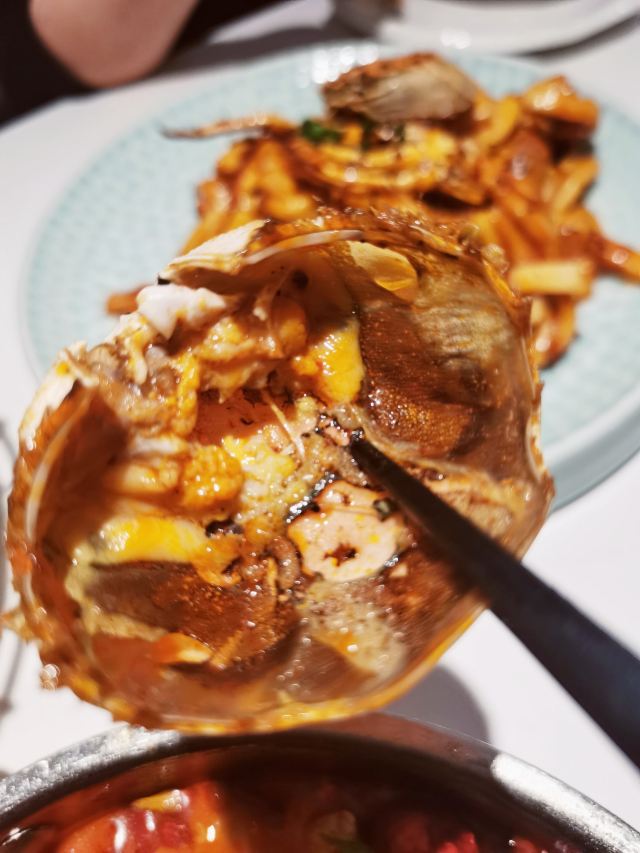 极具网红属性的一家餐厅 环境、服务基本没有太大毛病 尤其是环境,太适合拍照啦✅ 分分钟出片💫 也吸引了很多妹子前来打卡拍照 🥢【口味】 很多融合创新菜品 但在口味上并没有太多惊喜闪光点 略微显得平平无奇了些 也就更凸现了菜价的不合适❌ 很大一部分的成本体现在了装修上, 而非用在了最为关键的菜品本身😂 📢以下是相较可以推荐的几款菜品: 【肥牛和牛蛙的故事】 TOP1的菜品,更惊艳的是里面的酸萝卜🉑,爽脆可口,相比较反而作为主角的牛蛙和肥牛没有那么大的记忆点。 【榴莲披萨】 抗拒不了任何有关榴莲的菜品💯 满满榴莲肉加上酥脆薄饼,满足✅ 【仓库年糕蟹】 年糕非常有嚼劲Q弹🉑 因为螃蟹的个头不大所以凸显得年糕的份量占据了绝大多数