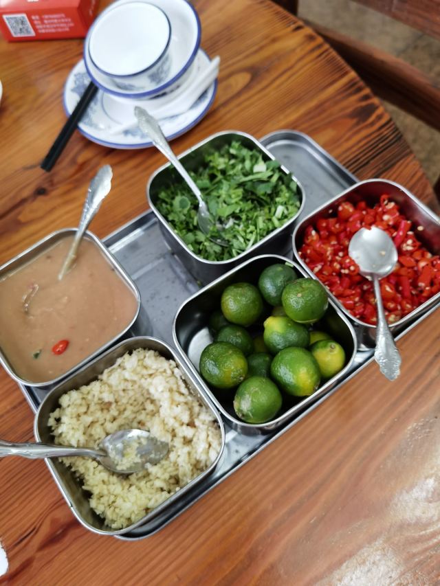 旅游度假一个被某平台超火的餐馆,实际打卡并没有很多人去,在一处路边,火锅味道偏酸,无其他香味,不过老板服务态度很好,亲自教我们调料碗,很感谢!
