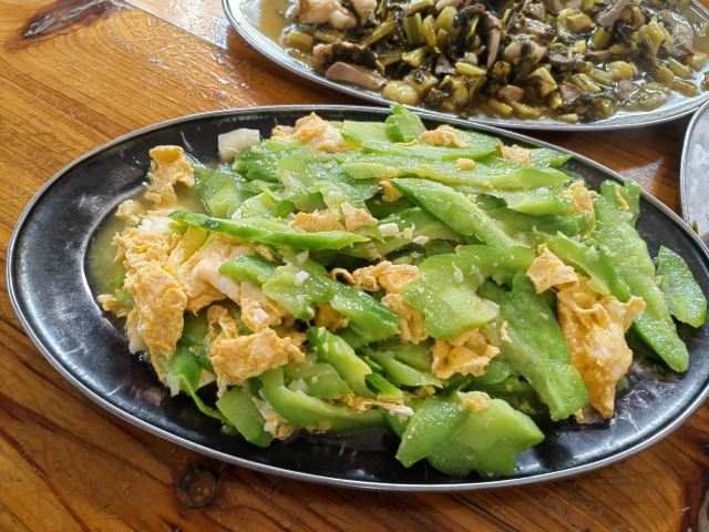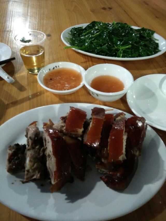 清炒番薯叶,猪内脏炒酸瓜,清炒苦瓜,韭黄炒蛋,蒜蓉空心菜,酸瓜,清补凉,烤乳猪,皮灰常的脆