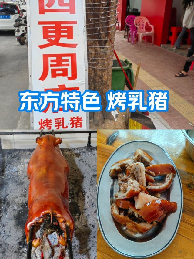 仿佛快乐来了海南肯定要吃一吃当地的特色。 东方市的传统美食是烤乳猪。这个赛道以前确实没有体验过。 这条小街道应该是各路乳猪的集散地了,大大小小的店铺有10家吧。各个店经营的内容不能说差不多,应该是一模一样。 看着乳猪穿着铁签子在炉子上打转一边滋滋冒油,确实是挺诱人的。不过真正切开装了盘子,尝上一口就会发现这个玩意儿确实挺腻,头一次吃的人真是未必能够接受。 200块钱一斤的价位确实不便宜。就个人口味而言,还是吃海鲜更带劲。 #城市向导官 #0元玩转这座城 #海南美食 #跟着点评趣迎春 #春日微醺 #优质笔记萌芽计划 #优质作者追光计划 #优质笔记攻略 #笔记掘金计划 #四月美食笔记挑战赛
