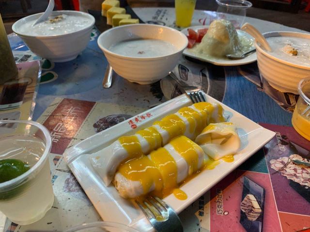 琼海的夜生活才刚刚开始🍭来的老店,吃了炸炸,就是炸串(有肉有素)…都好吃 芒果肠粉和绵绵冰(榴莲口味的)是特色,也是我的最爱,必点… 各种甜品(芝麻糊,红豆沙,清补凉)太多太多的琼海特色,都有不同的口味满足您的味蕾