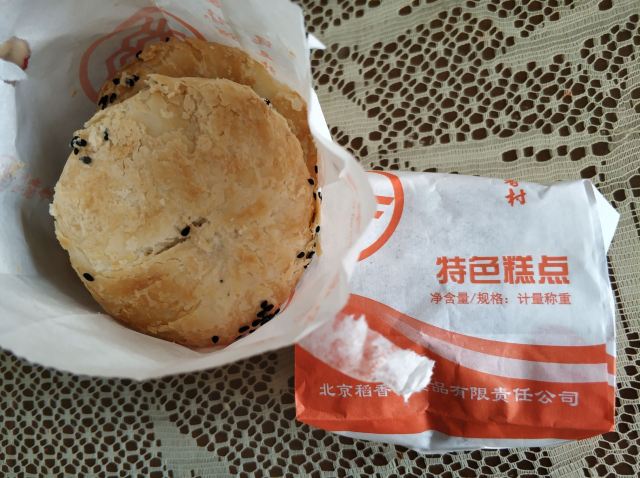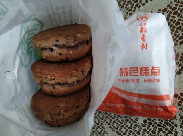北京稻香村这糖火烧,是俺最喜欢吃也经常买的点心,一个个圆滚滚小小的煞是可爱,掰开来没有白茬,入口酥甜绵密,浓浓的麻酱香中混着淡淡的红糖味道,回味无穷。想当年稻香村减掉一半营业面积时还真担心他在涿州开不下去,幸好坚持下来了,现今又在宜家旺东边开了二店,让喜爱中式糕点的人多了个可去之地。