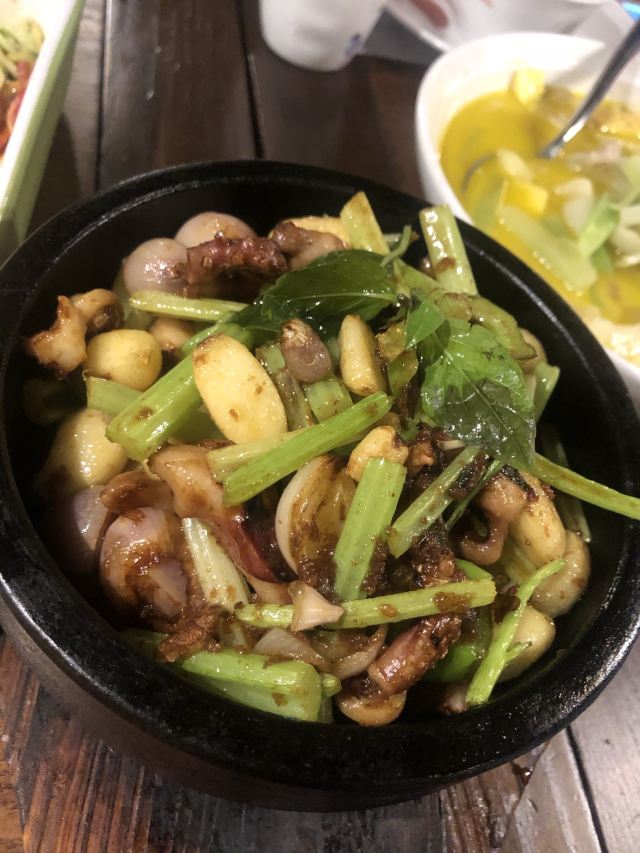 到海门出差,听说龙信广场吃饭的地方比较多,找到这家熟悉的锅里岩,7个人,点了十个菜,400块,价格适中,充值还有饮料送,加入会员还有生日券,赞👍