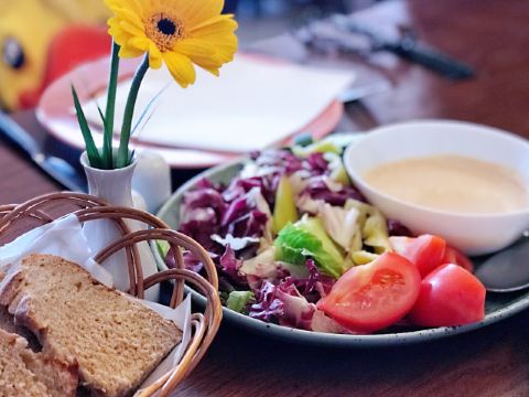 克鲁姆洛夫小镇上,最古老五星级酒店的配套餐厅,有自助餐区域,也有单独点餐的区域。 虽然从里到外的环境还算古典优雅,餐厅的服务却真心不怎么样,是行程至今,遇到过比较糟糕的table service咯… 午餐的菜单也很简单,几乎没有太多可选项。有限的几款出品,只能用水准平庸来概括,毫无记忆点的那种~