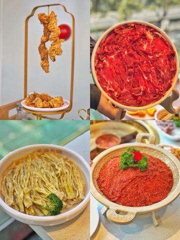 椒麻牛肉,深水虾,龙利鱼片,鸭血,猪脑,妈妈酥肉,鲍汁黑豆腐,撒尿牛肉丸,红酒醉牛肉,经典鸳鸯锅,金针菇培根卷,五花肉,银耳汤,重庆火锅,重庆椒麻牛肉,招牌毛肚,美味虾滑,豪渝至尊脆毛肚,盘龙酥肉,九尺鸭肠,鲜活深水虾,豪渝脆三宝,红糖糍粑