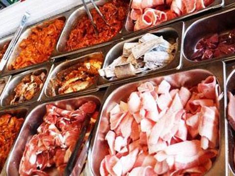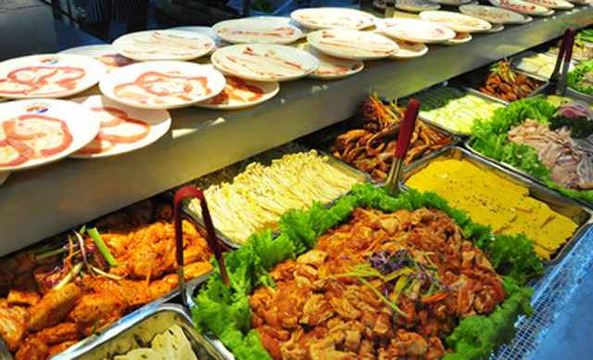 当地一家性价比极高的炭火烤肉自助餐厅,其实除了烤肉,还有新鲜的海鲜,虽然个头一般,但绝对新鲜。我们仍旧满足于那一盘盘内,叠起来真有成就感。