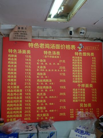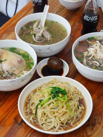 鸡杂汤配干拌面,鸡大腿面,鸡汤馄饨,老卤蛋,鸡肫面,鸡丝馄饨,小菜,鸡丝汤,鸡翅面,小杂汤,麻辣鸡爪,麻辣鸡脖子,鸡丝鸡肫面