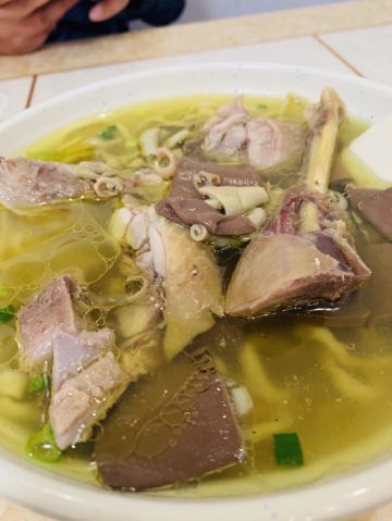 谷春先5年老店, 隐藏在闹市里的鸡汤面馆,口味满分! 天渐渐的冷了,有什么比一碗鸡汤面更温暖人心! 乡村老鸡汤面馆,藏在南京不怎么出名的实辉巷内! 最为只有本地人才知道的宝藏面馆,口碑相当的好,来的都是老客! 就不是同事安利,在南京生活那么久,压根就不知道! 店内菜单分为:特色汤面类、特色汤类、特色馄饨类、干拌面,四大类! 鸡汤每日现熬,黄澄澄的鸡油漂浮在碗上,发着亮光,无敌诱人! 汤内放入了少许的胡椒粉提味,喝上一口鲜到骨子里! 鸡大腿面,店内的镇店之宝,鸡腿比拳头好大! 吸满了汤汁的精华,啃起来十分带劲,超过瘾超级爽! 小杂汤,里面是血、肠、丝、肝、肫! 杂汤配干拌面,鸡块、血、肠、肝、肫、头、爪、脖! 鸡内脏都处理的很干净,特别是鸡血柔嫩,手擀面口感筋韧、面香浓郁,让人念念不忘! 鸡汤馄饨,馄饨个大皮薄馅足,鲜而不腻,馄饨就这鸡汤一同下肚,吃的顾客都赞不绝口! 老卤蛋,个个喷香入味,味道一流! 店内有外卖,建议堂食!周末中午生意比较好,可能需要等位! 不会喜欢胡椒粉与小葱的可以主动提,可以不加! 店名:乡村老鸡汤面馆 地址:实辉巷 交通:地铁1号线三山街站4号口步行770m 时间:08:00-21:00 人均:19元