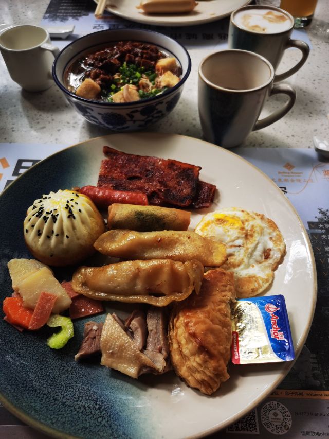 Jinhaiwanzizhu Restaurant (Jinling Hotel)大老远从广州来特意体验一下金陵饭店的早餐,环境好,服务也很好,在一个戴着眼镜的小姐姐的推荐下尝了萝卜苹果汁就很喜欢,金陵大肉包果然好吃🥰,还有鸭血粉丝,皮肚面等等很多选择,小蛋糕也不错,一口一个淡淡甜,最惊喜的就是尝到了心心念念的盐水鸭,真的好开心啊~~因为我来饭店的两大目标就是大肉包子和盐水鸭😆真是满足回广,不留遗憾,最后也感谢“家餐厅”的小婕,会提前留意到我们的需求,让我觉得这家酒店真是棒棒哒👍👍👍😇
