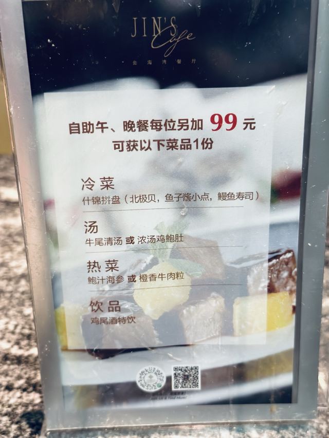小笨熊2018环境,金陵饭店老楼,环境很好,和新楼有走廊通的,地下车库上来在新楼一楼,走过走廊就是自助餐厅啦。有户外座位,五一期间还有乐队驻场唱歌,晴朗的天气晚上户外也不错。 服务,人蛮多,但会来换盘子还不错。有的服务员很亲切,有的服务员比较生硬大牌。 菜品, 点心档不错,面条,锅贴啥的都蛮好, 龙虾不限量,但是个头很小,毕竟这价格不能要求太高, 饮料种类很多。 在水煮虾子那居然看到一个大苍蝇飞在虾子上,其它菜品都还好,可能因为旁边有服务员煎炸料理等操作苍蝇不敢去,大虾那边正好没什么人,顿时很郁闷,158的价格在南京自助餐不算贵但起码要干净吧,五星级酒店哎,而且是曾经的王牌金陵饭店,总之印象大打折扣。来过几次第一次遇到这种情况,希望金陵饭店保住老牌五星地位。