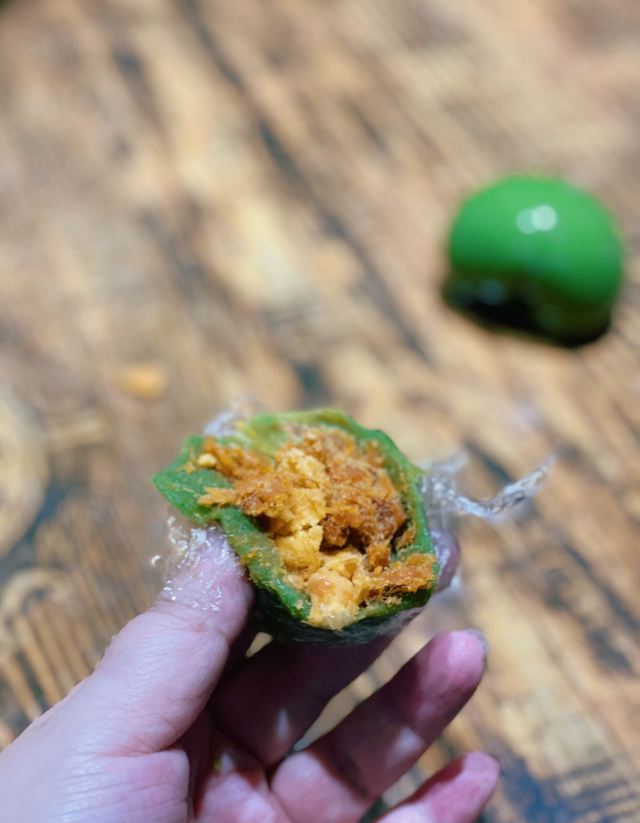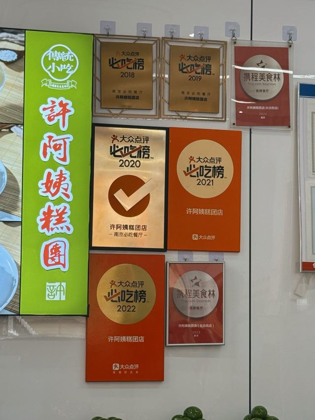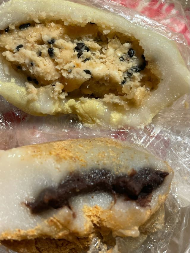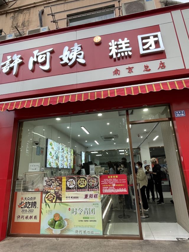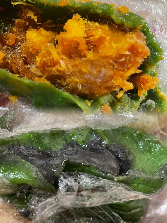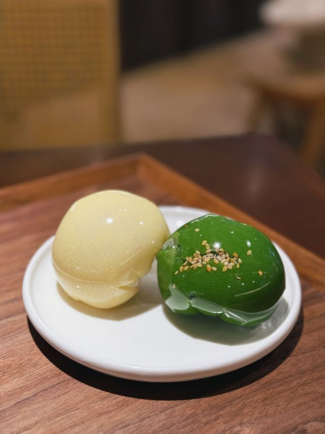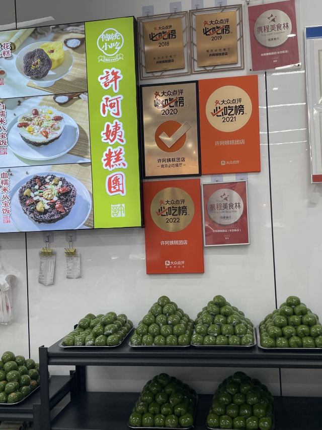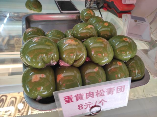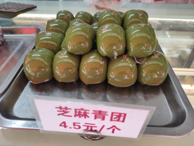来南京旅行一定要吃的糯叽叽青团 来了几次吃下来心中的排名如下: No.1️⃣蛋黄肉松青团 No.2️⃣芝麻青团 No.3️⃣豆沙青团 这次来吃了芝麻青团 ,不会特别甜,青团皮依然优秀,但最爱的还是蛋黄肉松青团 🥧金团 这里的金团也不错,花生芝麻馅儿,皮子滚上松花粉,中和了金团的钱。