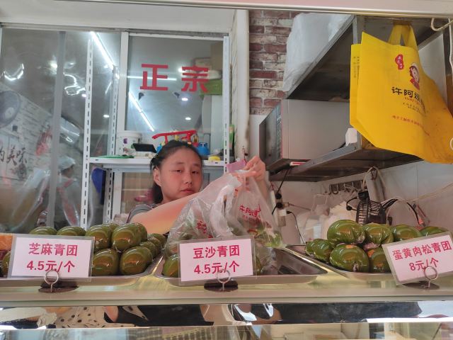 他家的团子品种很多,劲道,不粘牙,满嘴清香,