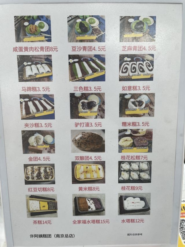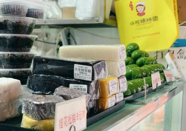 蛋黄肉松青团,豆沙青团,芝麻青团,马蹄糕,桂花松糕,酒酿赤豆元宵,桂花糖芋苗,糕团小点,四喜元宵,桂花糖竽苗,血糯米松糕,豆沙馅青团,赤豆元宵