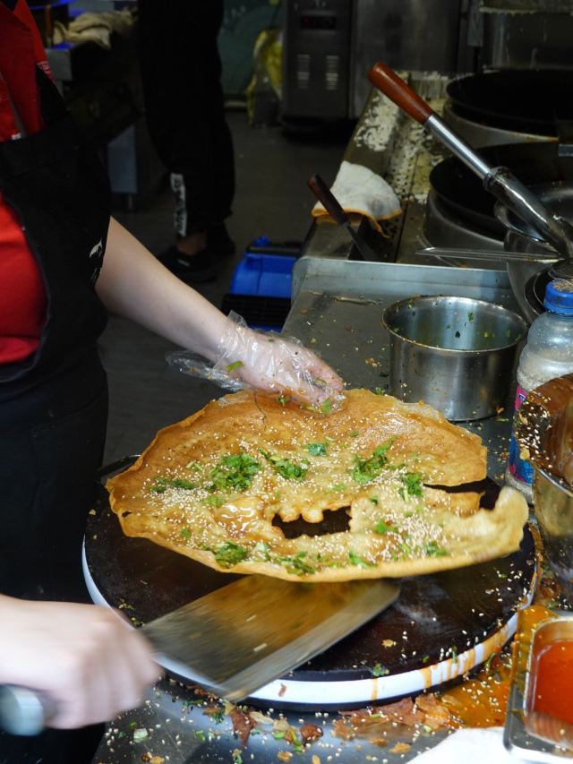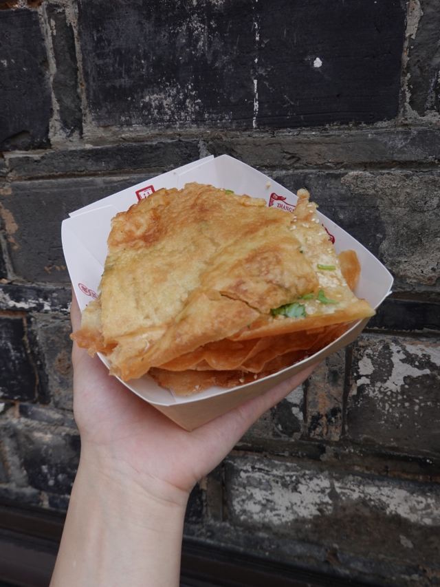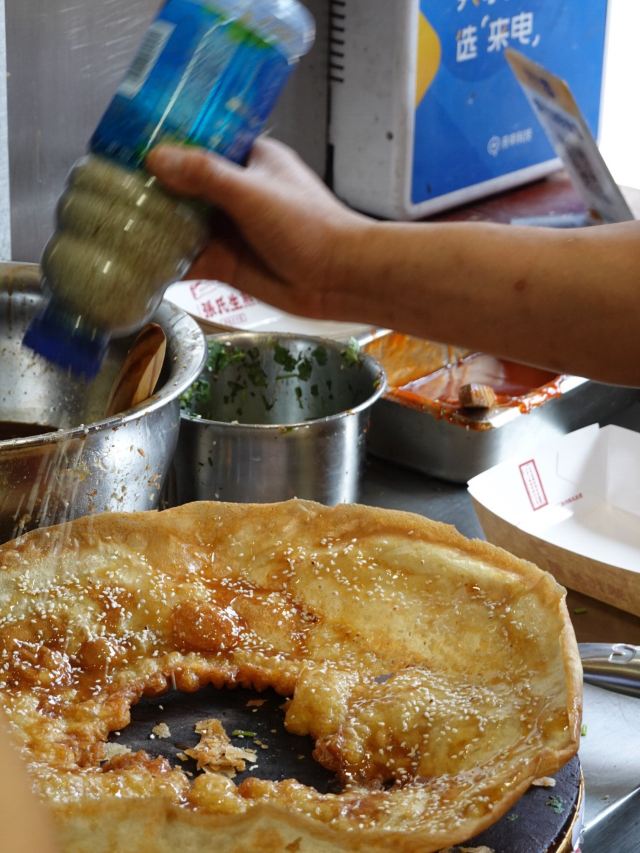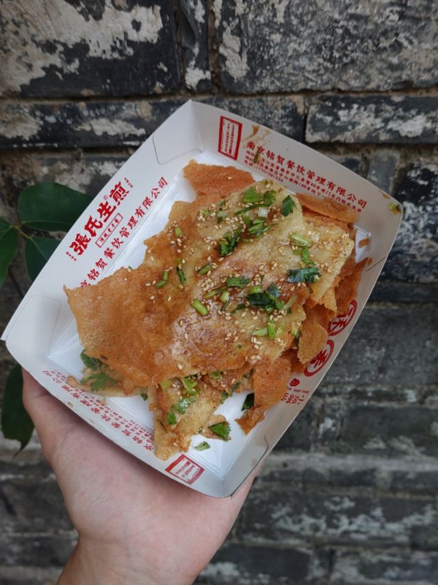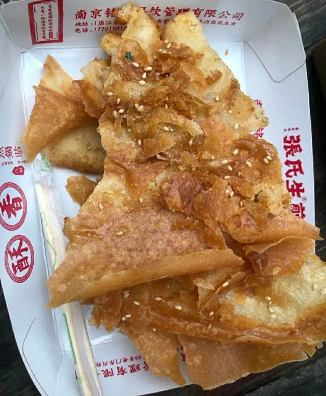 默读L🈁张氏生煎老门东店,脆皮年糕、铁板豆腐、小鱼锅贴、蒸儿糕这些街边美食,在这里都可以买到,『路边小食』的乐趣油然而生。 🆕『小鱼生煎』是种油炸薄饼,刷点不同的酱料,目前是3种,『原味』、『甜辣』和『藤椒』的,再撒点葱花芝麻,整体切开就好,一定要趁热吃到那个又酥又脆的劲。 📍店铺地址:老门东三条营61号 📍营业时间:10:00-21:00 📍人均价格:14元/人